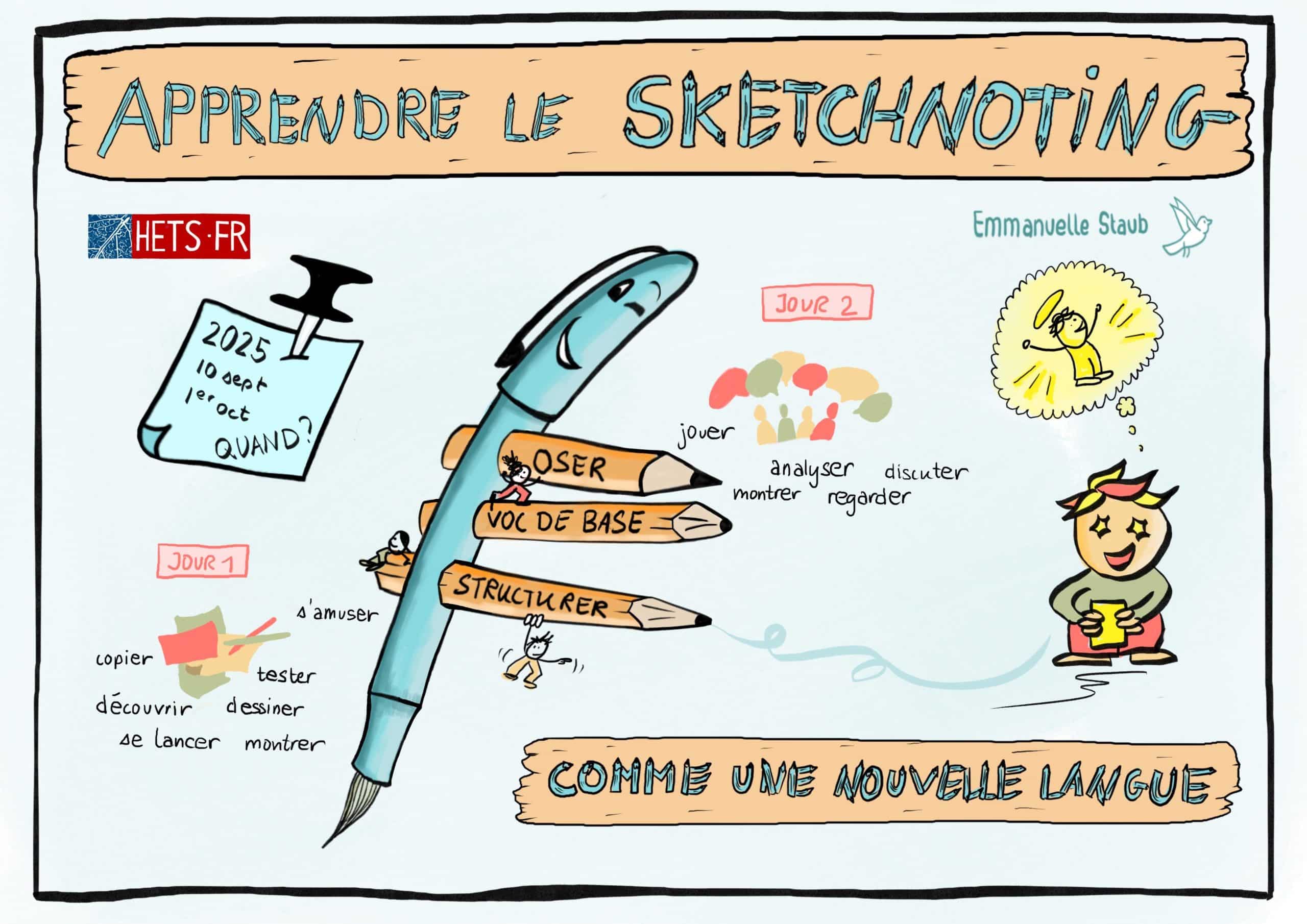 Vous n’avez pas besoin de savoir dessiner ! Je propose toute sorte d’exercices ludiques pour délier la créativité et se sentir à l’aise dans cette nouvelle méthode de sketchnoting.